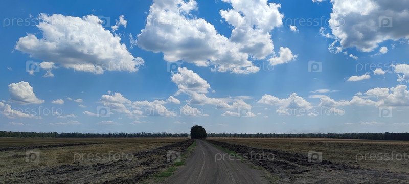 Постриженное поле под облаками