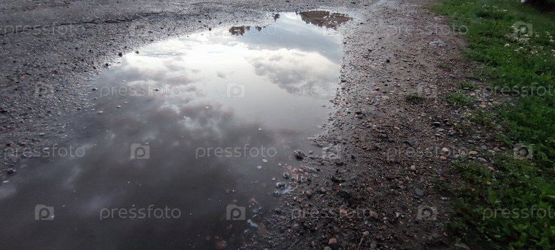 Отражение неба в луже воды