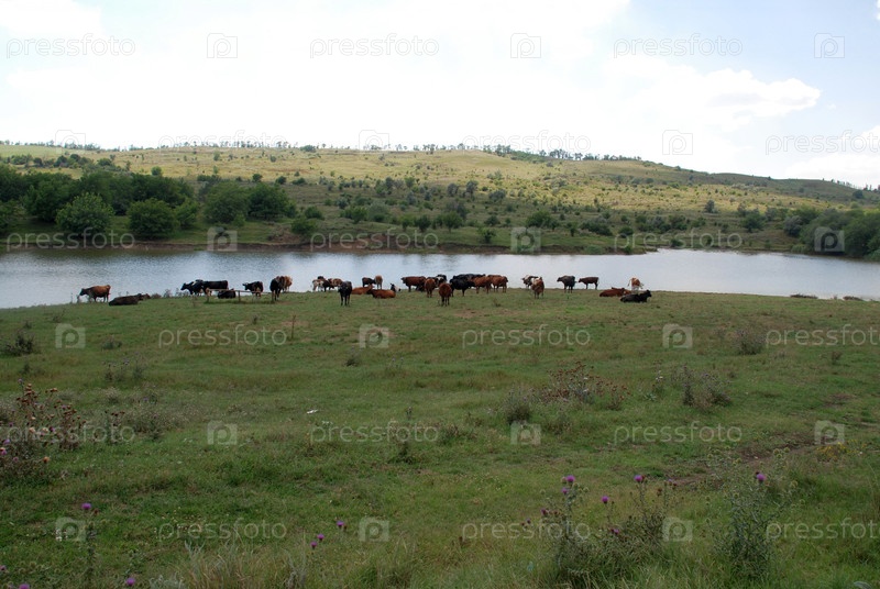 Стадо коров у реки