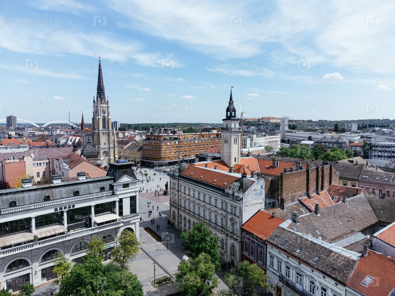 Полет беспилотника над центром и центральной площадью города Нови-Сад, Сербия