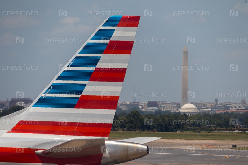 1 июля 2025 Самолет American Airlines взлетает с купола Капитолия США в Вашингтоне