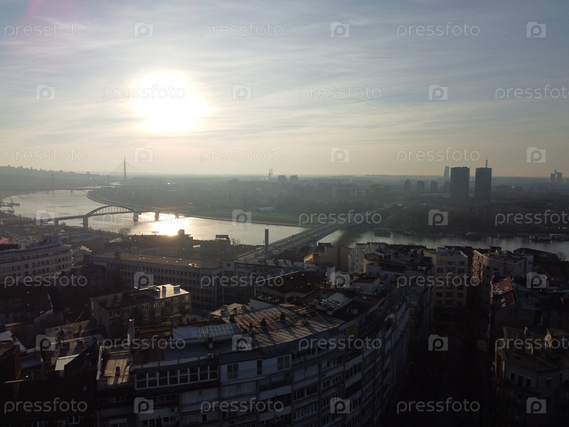 Вид из воздуха на центр Белграда вечером. столица Сербии. Европа