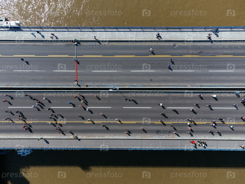 23 апреля 2023 года в Белграде, Сербия Тысячи бегунов на 10 км стартуют во время Бельградского марафона