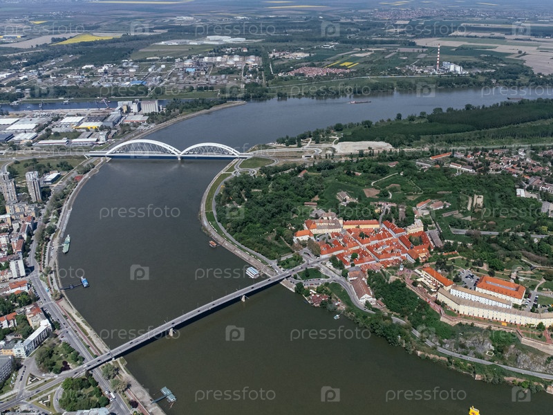 Зональный снимок с дронов крепости Петроварадин, расположенной на берегу реки Дунай напротив Нови-Сада. Сербия