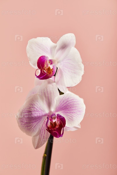 Цветки орхидеи Phalaenopsis белые цветы с розовыми венами и ядром на розовом фоне
