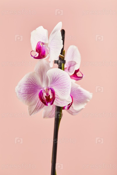 Цветки орхидеи Phalaenopsis белые цветы с розовыми венами и ядром на розовом фоне