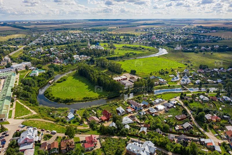Суздаль, Россия. изгиб реки Каменка. вид с воздуха