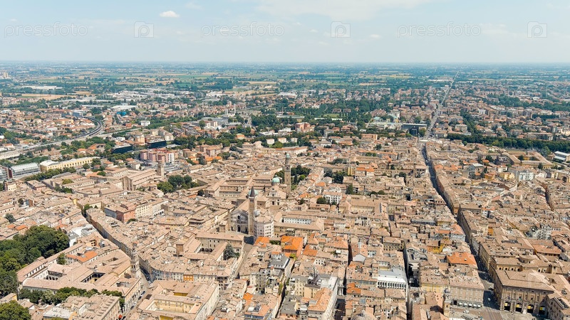 Парма, Италия. Исторический центр Пармы. Собор Пармы. Панорама города с воздуха. Летний день, Aerial View Par