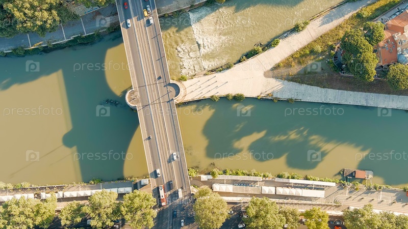 Рим, Италия.Рика Тибр и мост Понте Гарибальди.Лето, Aerial View