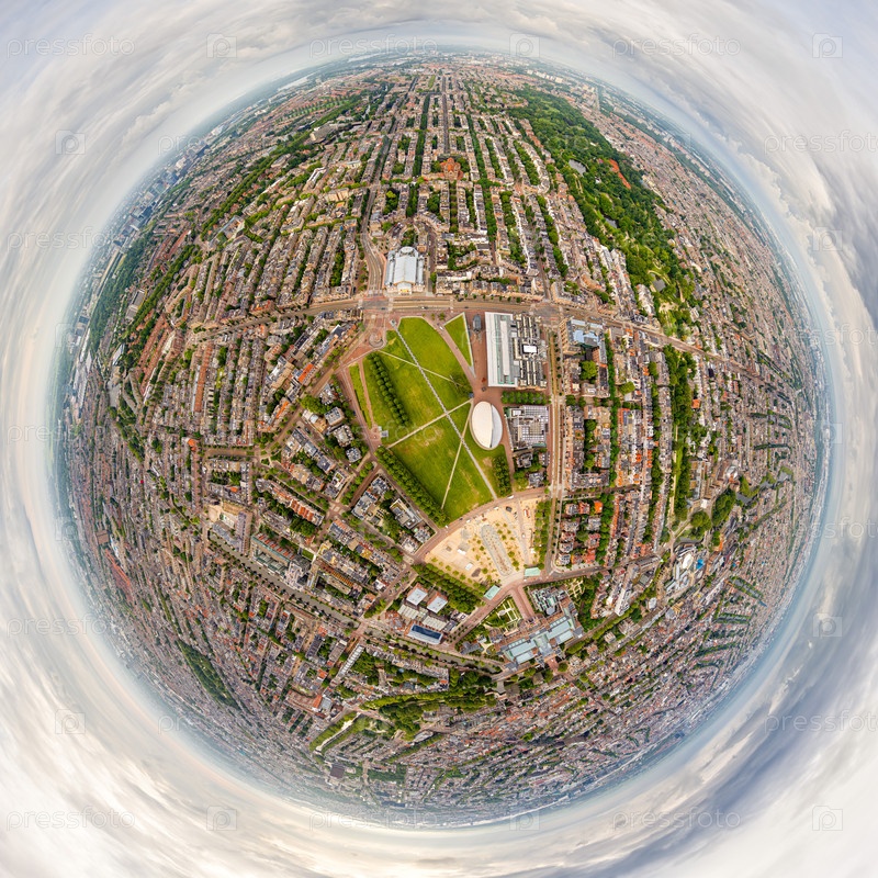 Амстердам, Нидерланды Музейная площадь - это квадрат с тремя известными музеями Панорама города летом утром в пасмурную погоду 360 градусов панорамный астероид