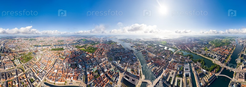 Копенгаген, Дания. Панорама города летом. Солнечная погода с облаками. Панорама 360