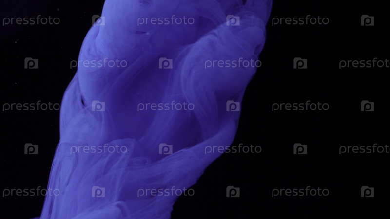 Синий чернил в аквариуме на черном фоне. Скриншоты. Красочные чернила в воде, краска кружится под водой