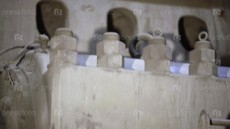 Замысловатый и подробный вид различных механических компонентов, демонстрирующих значительное накопление пыли