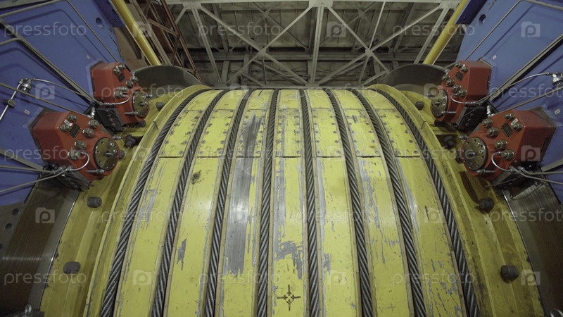 Детальный вид большой промышленной машины, демонстрирующей свой сложный вращающийся механизм на фабрике