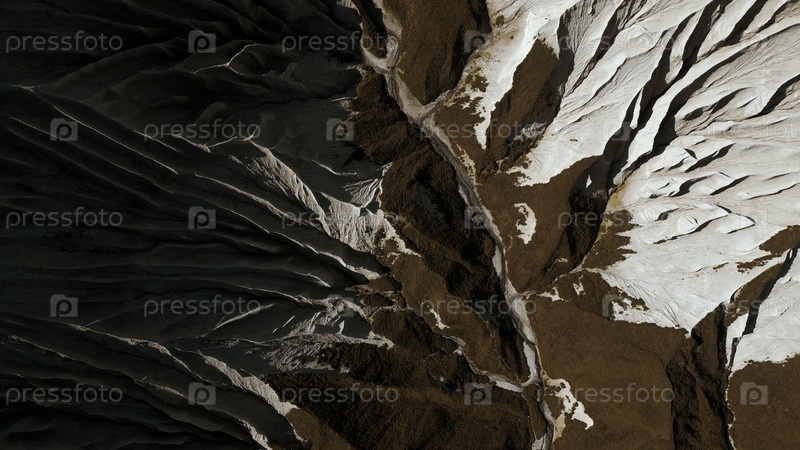 Вид сверху из воздуха загадочных горных скал.Клип.Белые каменные слои и коричневая почва
