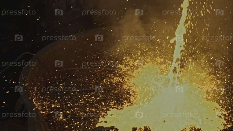 Джет расплавленного металла разливается брызгами. Скриншоты. Жидкий расплавленный металл заливают на металлургическом заводе. Сталелитейная мельница с потоками расплавленных металлов, подобными лаве