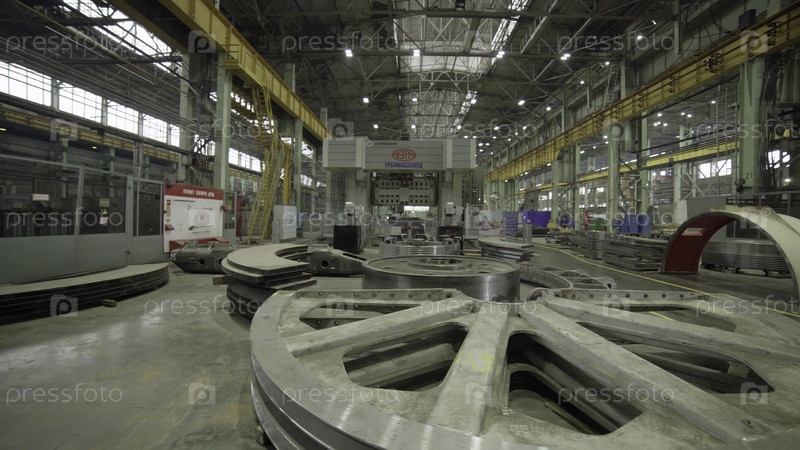 Просторное промышленное предприятие с тяжелой техникой и материалами для крупномасштабного производства