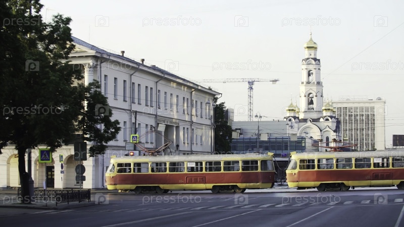 Живая городская сцена, которая творчески демонстрирует увлекательное сочетание современной и традиционной архитектуры