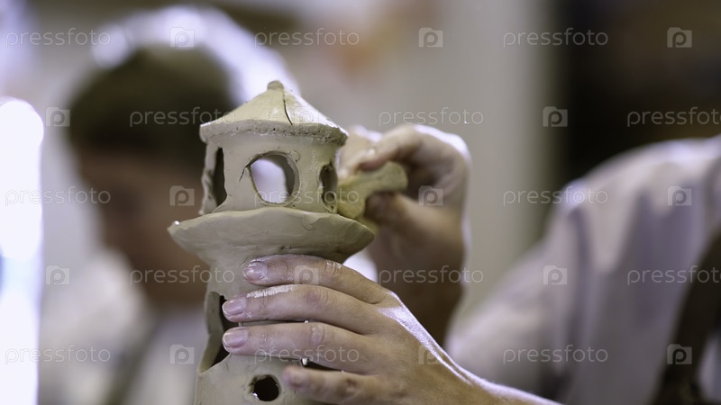 Ремесленник умело изготавливает красивое и декоративное керамическое изделия с тщательной детализацией