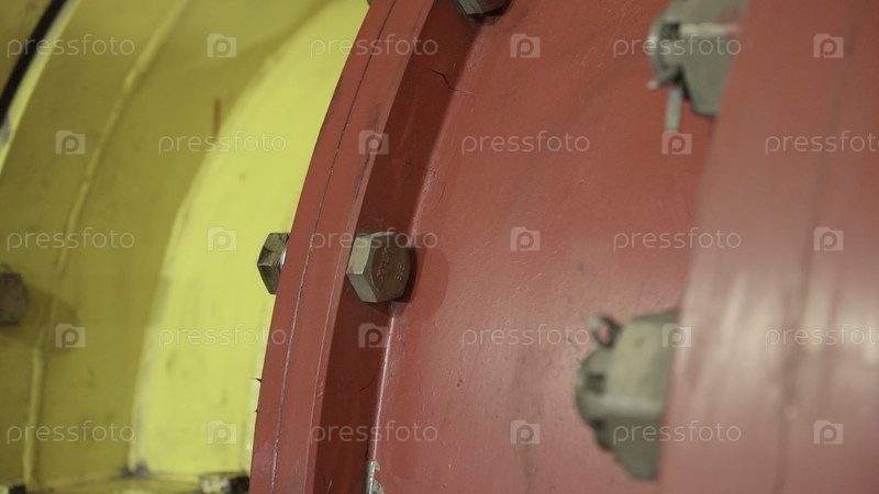 Ближайшее изображение ярких промышленных компонентов с яркими красными и желтыми цветами наряду со структурными деталями