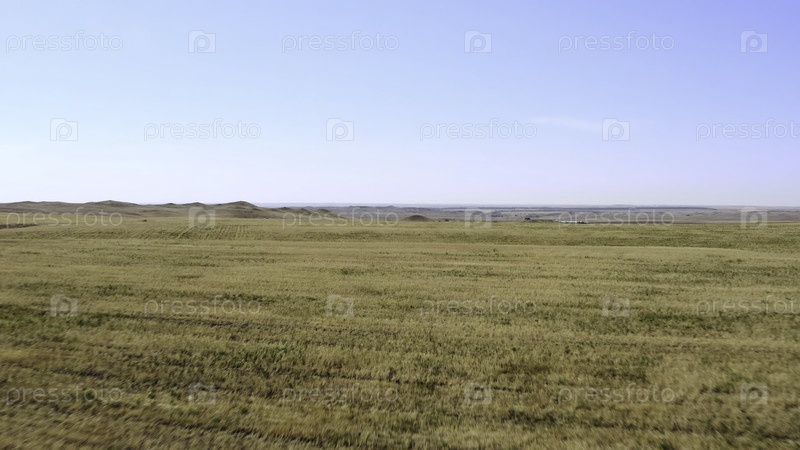 Бесконечные золотые луга простираются далеко в горизонт под беспрепятственным, чистым голубым небом