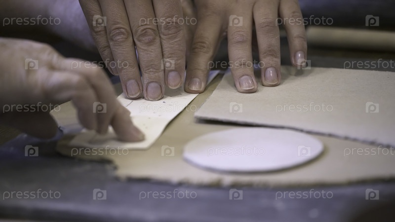 Руки, занятые в искусстве работы над керамическим ремеслом и исследованиями методов