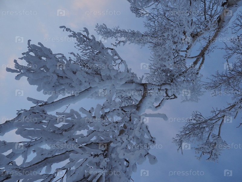 Заснеженные ветви деревьев. Сахалин. Покрытые снегом ветки деревьев. Сахалин. (марка)