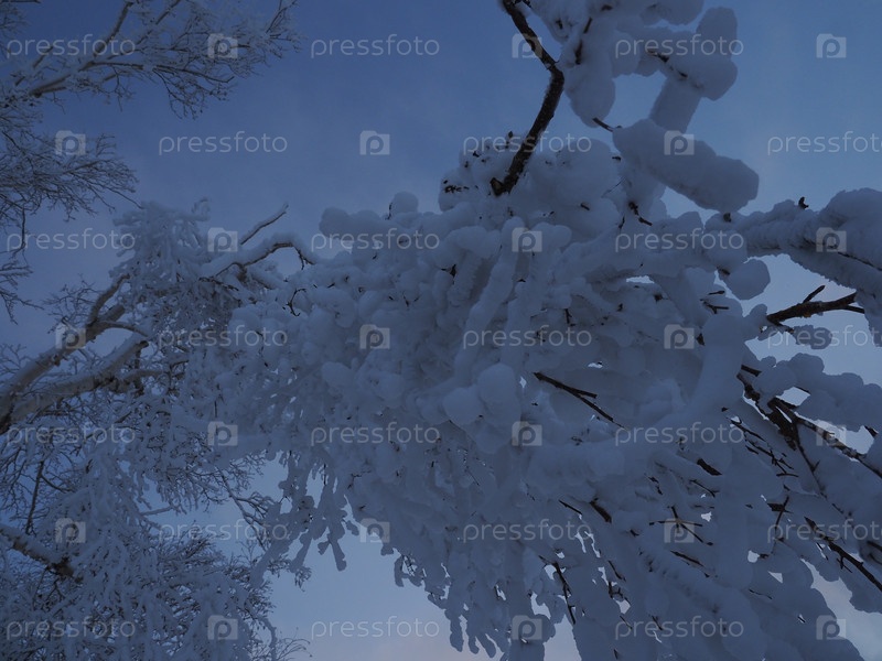 Заснеженные ветви деревьев. Сахалин. Покрытые снегом ветки деревьев. Сахалин. (марка)