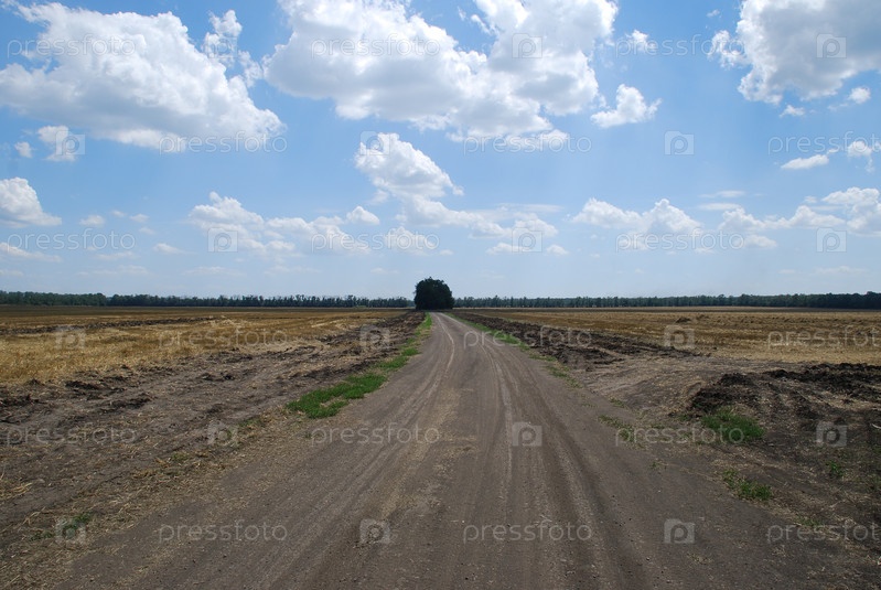 Под небом поленое поле. Летний солнечный день в деревне. Широкое поле, на котором росли зерновые культуры. Желтые, засохшие, сжатые стебли растений остались на поле. Сверху светло-синее безоблачное небо