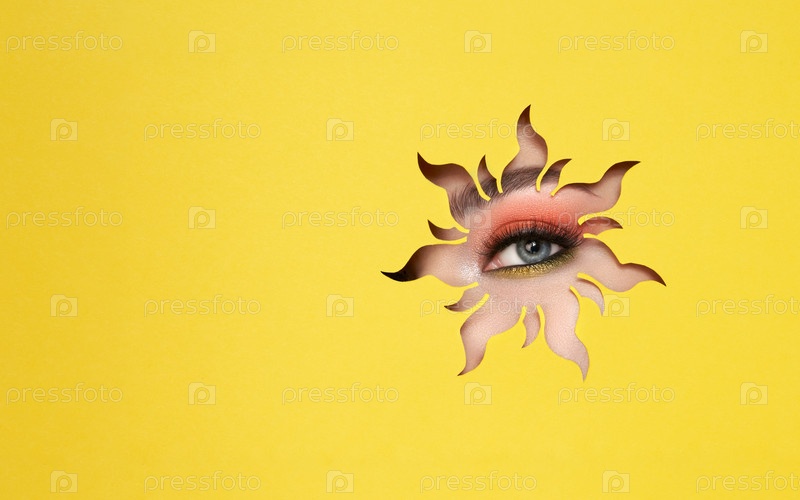 Глаз молодой красивой женщины с косметическим макияжем