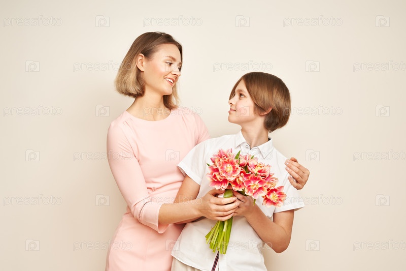 Мальчик дарит своей матери цветы