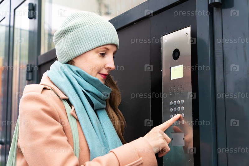 Женщина, звонящая по интерфону
