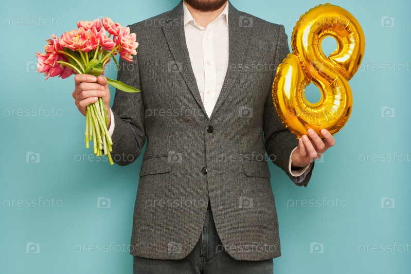 Человек с букетом тюльпанов и воздушным шаром номер 8