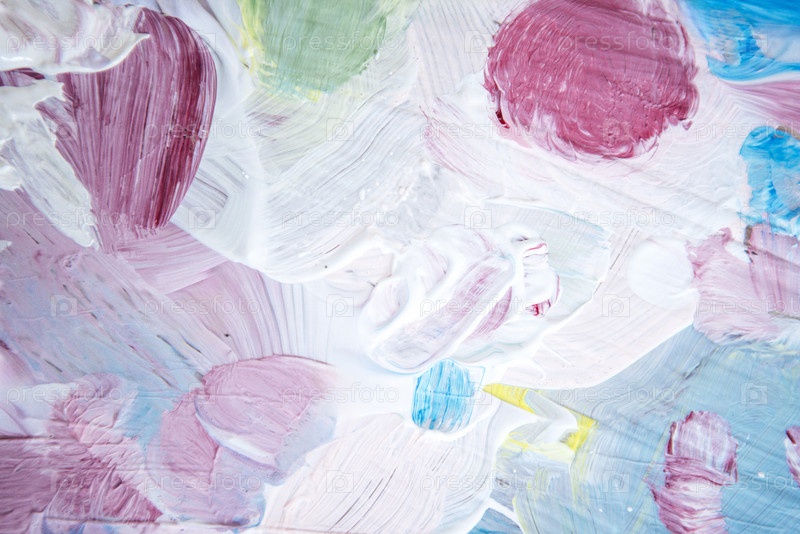 Абстрактная живопись с яркими вихрями розовых, синих, зеленых и желтых цветов в слоях на текстурированном белом фоне, демонстрируя динамичную художественную композицию