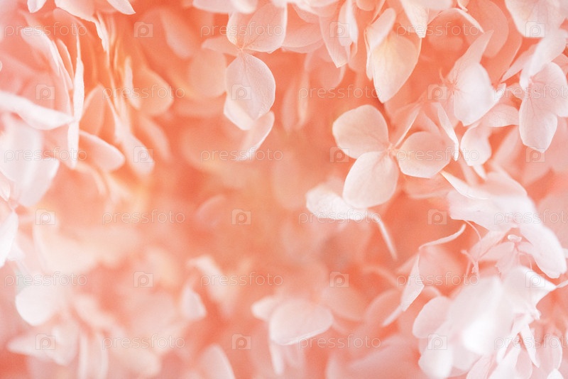 Близкий взгляд на деликатные лепестки розовых гортензий, красиво расположенных, демонстрирующих мягкие текстуры и тонкие цветовые вариации на цветном фоне