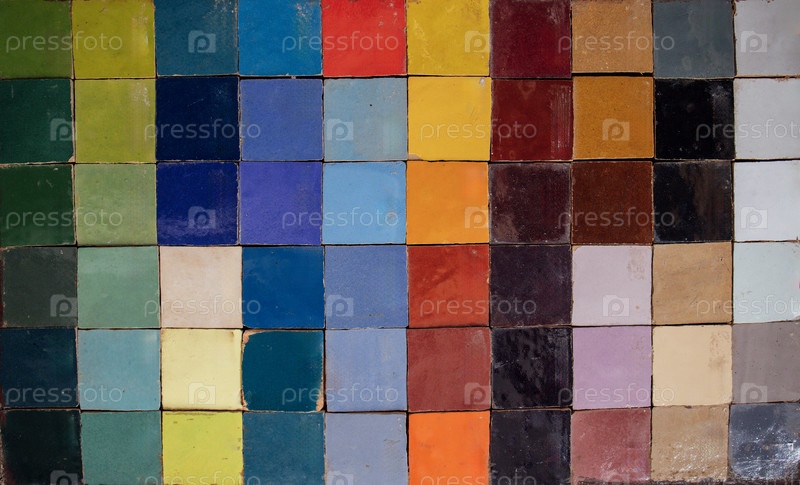 Красочные керамические плитки, расположенные в сетке с различными оттенками и оттенками, идеально подходят для дизайнерского вдохновения и художественных проектов