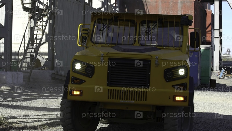 Сильный и прочный желтый грузовик, умело ориентирующийся в оживленной промышленной среде с точностью