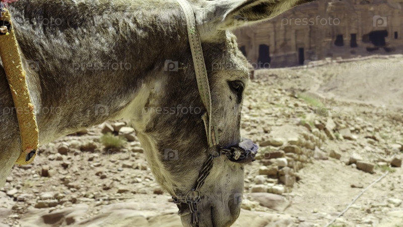 Ближайший снимок осла в обширном пустынном ландшафте, демонстрируя его особенности и окружение