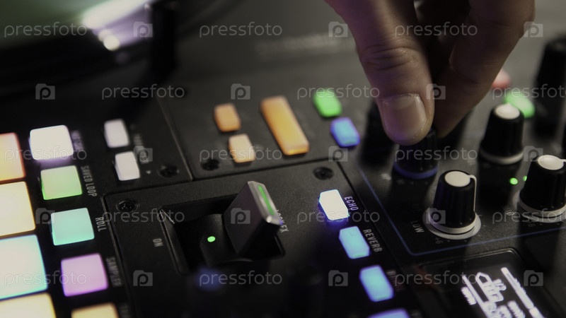 Музыка на вечеринке. арт. ди-джей на своем пульте создает музыку для отдыхающих людей. высокое качество 4k кадры