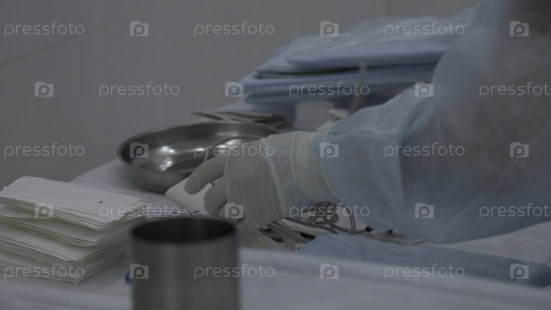 Таблица медицинских инструментов размещается на столе в рамках подготовки к операции