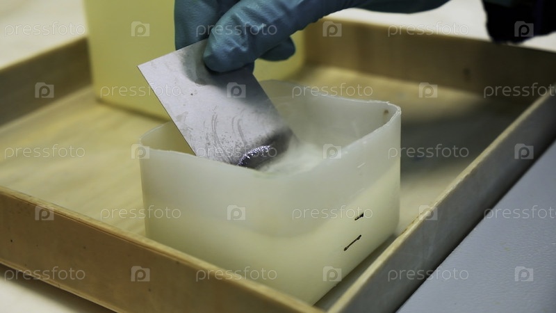 Концепция лабораторных исследований.Клип.Закрытие рук в перчатках, помещение тонкой металлической пластины в химическую жидкую субстанцию
