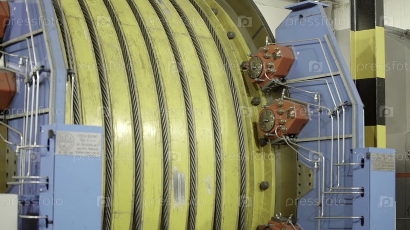 Промышленное оборудование с большим механизмом желтого ролика для различных операций и функций