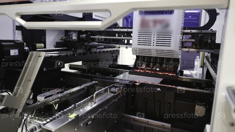 Это изображение демонстрирует сложные автоматизированные машины, предназначенные для точных производственных операций