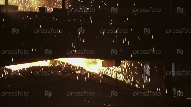 В промышленной среде горячий металл разливается ослепительными искрами, демонстрируя экспертизу и мастерство