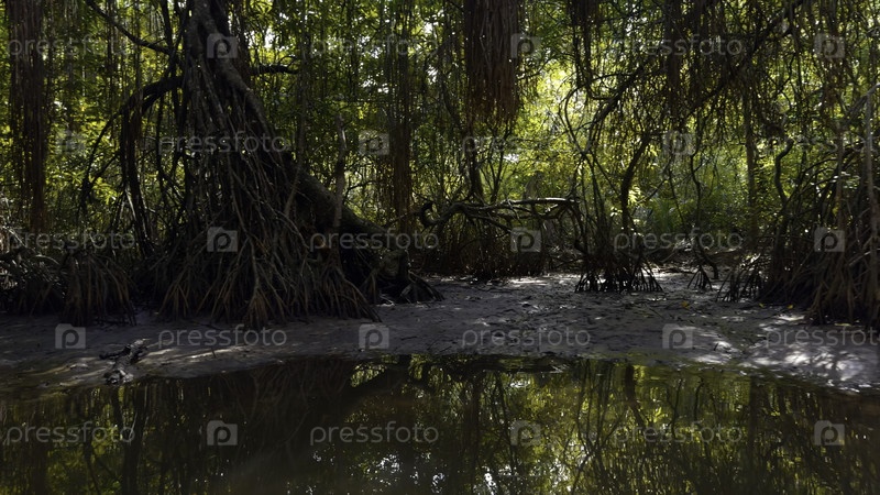 Река в тропическом лесу Австралии. Действие. Спокойная река и джунгли в жарких летних регионах