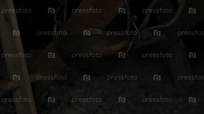 Нагретый котел для работы с чугунным железом. СМИ. Горящий и нагревающий котёл, чтобы облегчить деформацию железа. Высокое качество 4k кадры