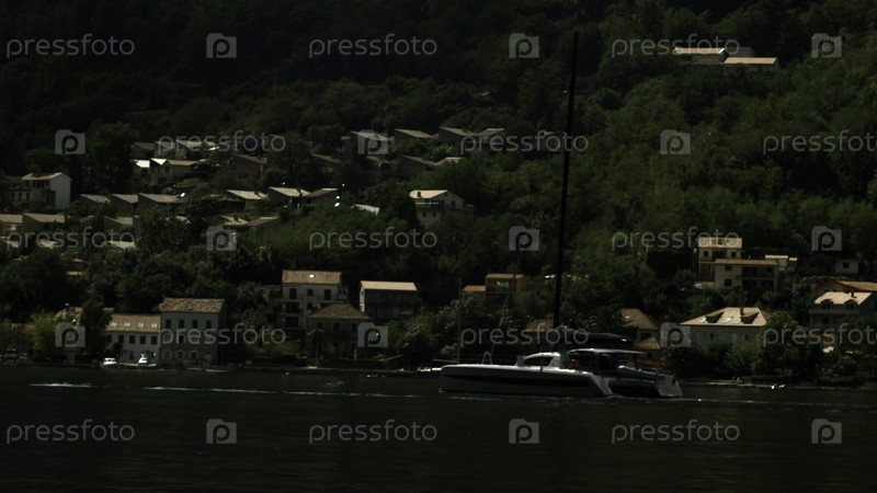 Парусная яхта, пришвартовавшаяся у берегов озера в Италии.Креативность.Романтическая атмосфера.Тихая и умиротворяющая сцена с парусной лодкой