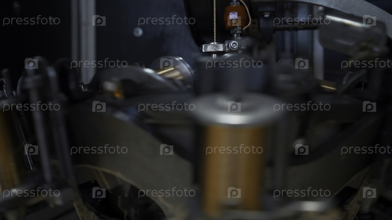 Вращающиеся катушки с проволокой. креативные. быстрые вращающиеся катушки с медным проволом на металлургическом предприятии. автоматическая машина для обмотки медной проволоки