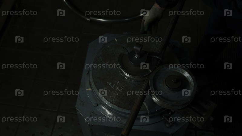 Промышленная машина для изгиба стальных труб и металлических стержней. креативное. промышленное устройство для изгиба металлопроводов на фабрике