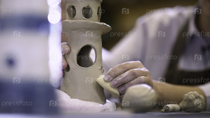 Ремесленник посвящает себя сложному процессу изготовления детальной глиняной скульптуры, которая напоминает башню